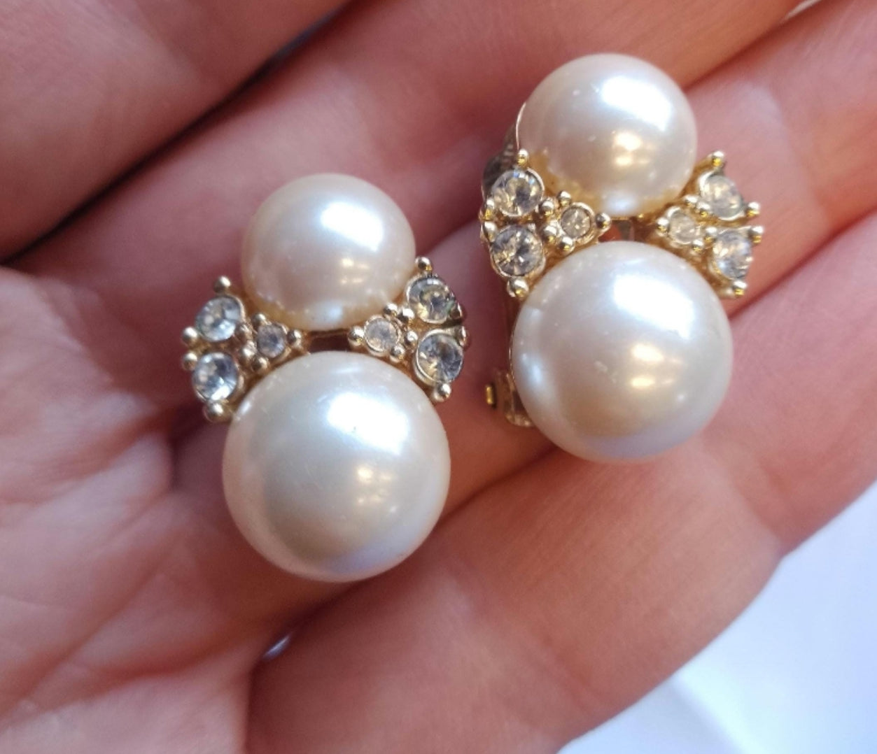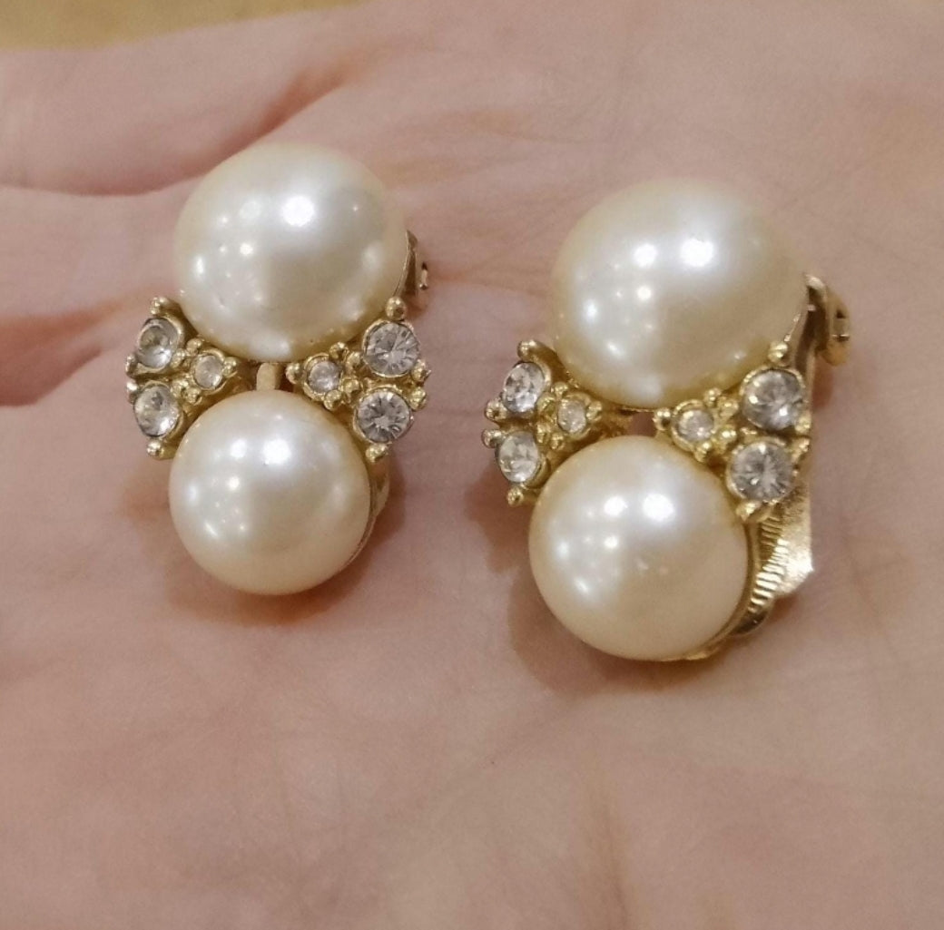 Exquisite Vintage Dior Double Faux Pearl earrings by Christian Dior Germany.