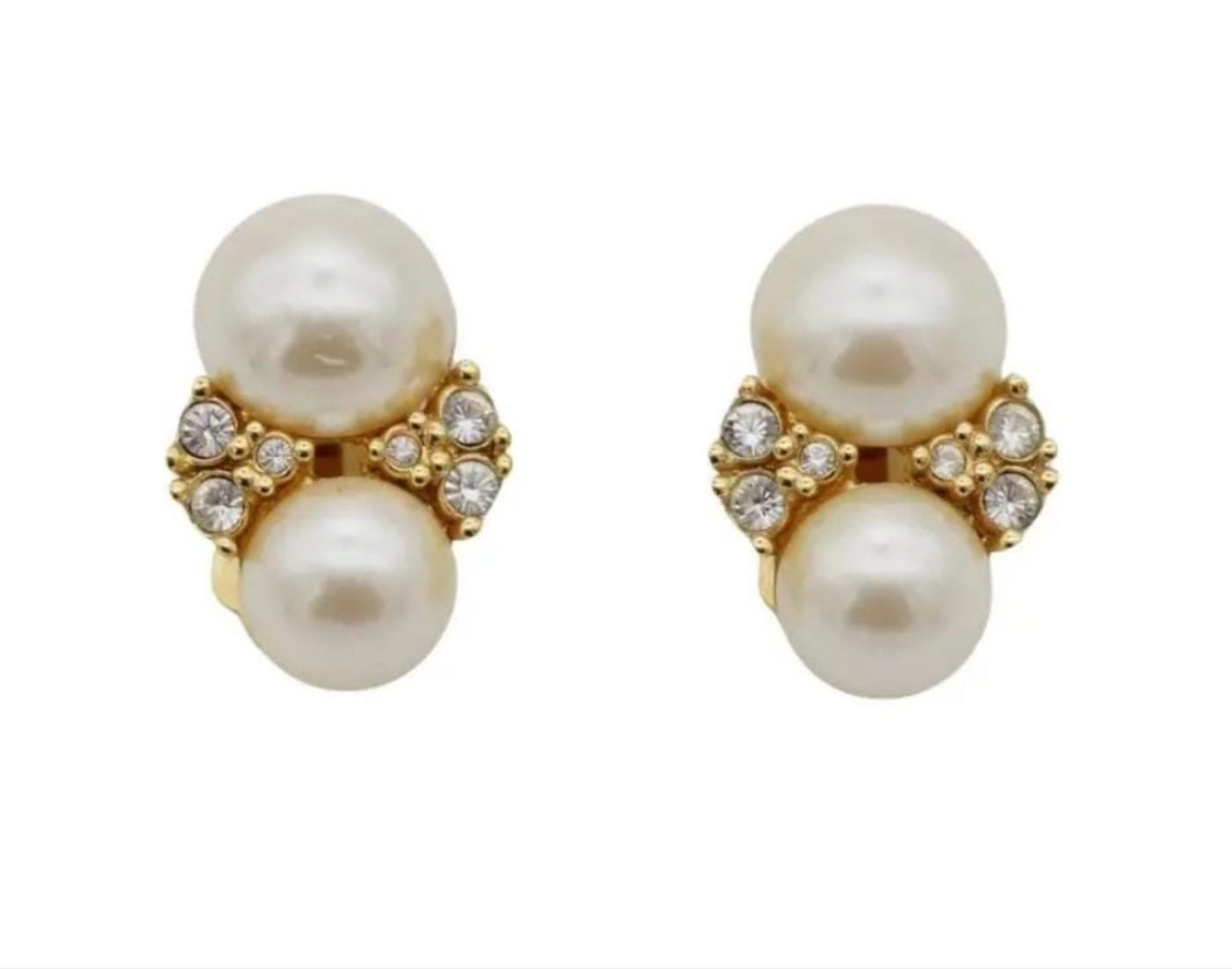 Christian Dior - Authentic Vintage Signed Faux Pearl Earrings 1980s