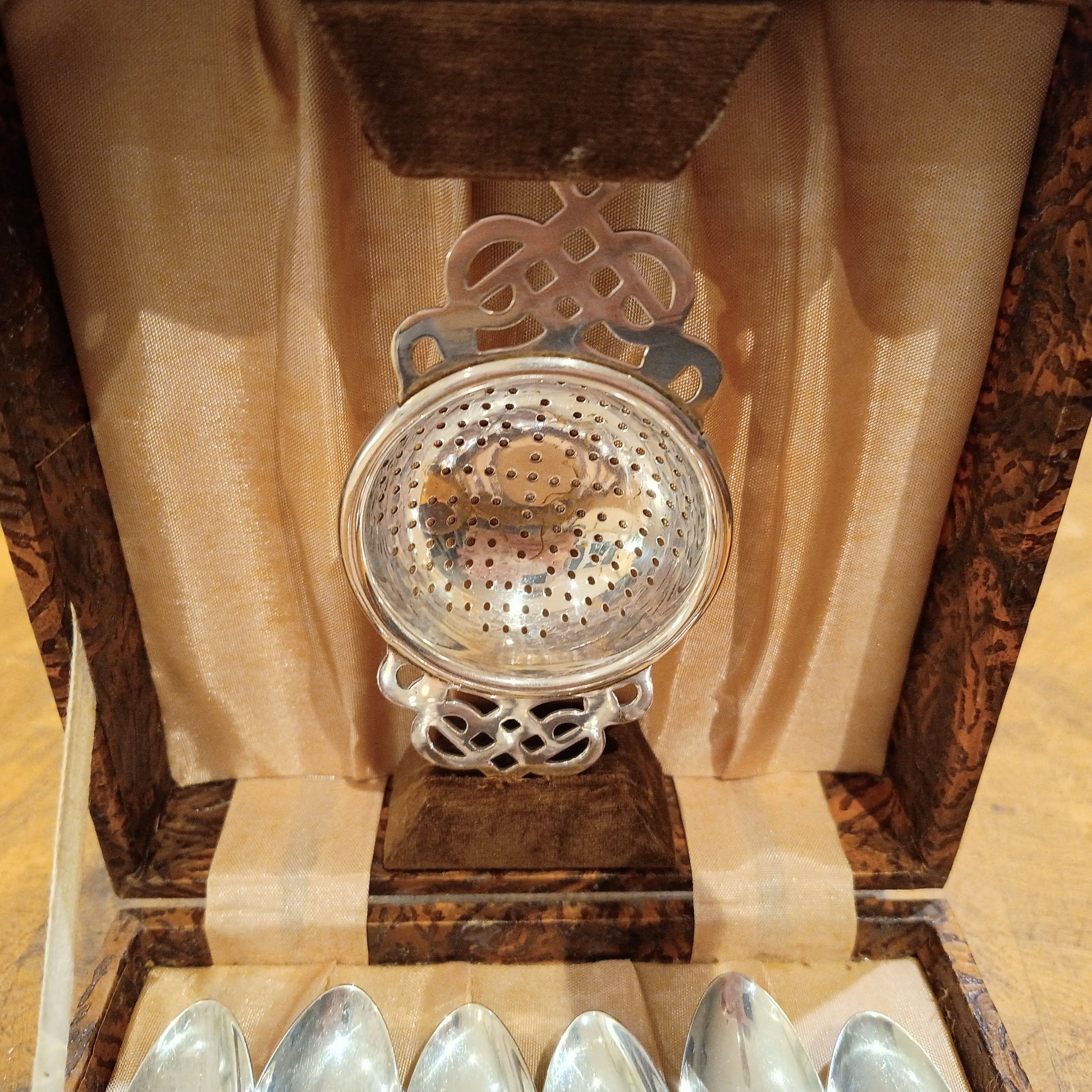 Vintage Silver Plate Set of Afternoon Tea Spoons with Matching Tea Strainer