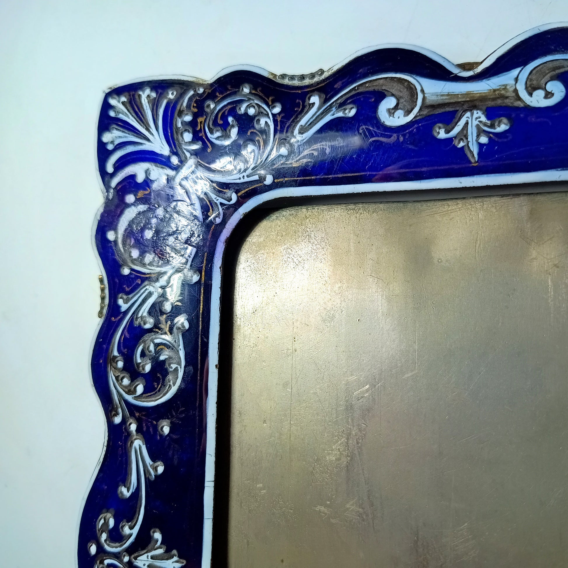 Unique French Frame, Prong Mounted Limoges Enamel on Copper Ultramarine Blue, Attributed to Exclusive Paris retailers Maison Alphonse Giroux, 19th century