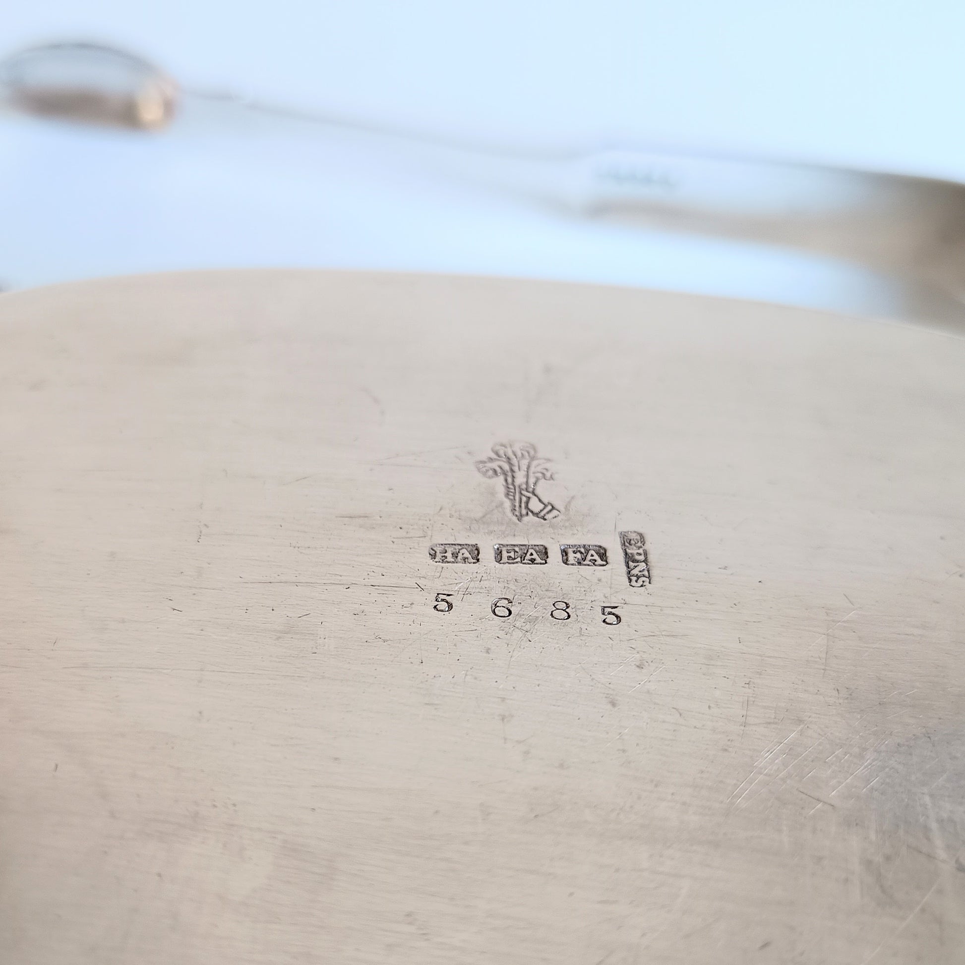 Antique or Vintage English Atkin Bros Silver Plate Bread Roll Basket or Croissant Serving Dish with Scottish Style Serving Tongs