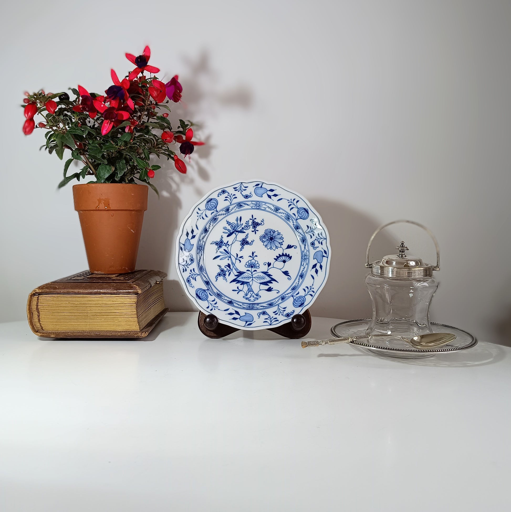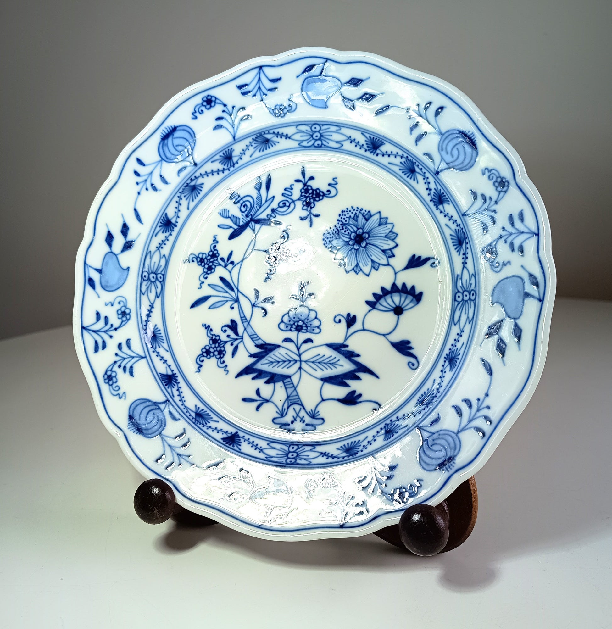 Authentic Vintage Blue on White Meissen Porcelain Cake or Cheese Plate 19 cm Blue Onion Zwiebelmuster Pattern