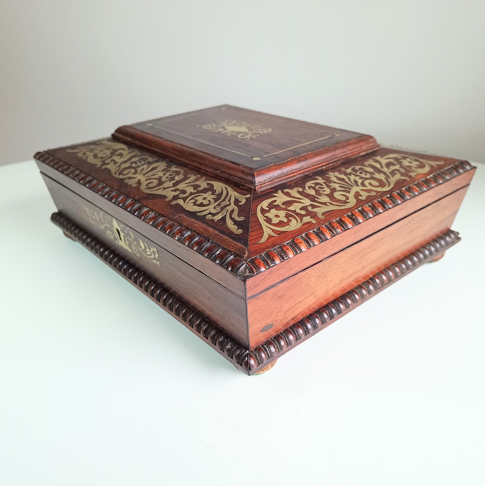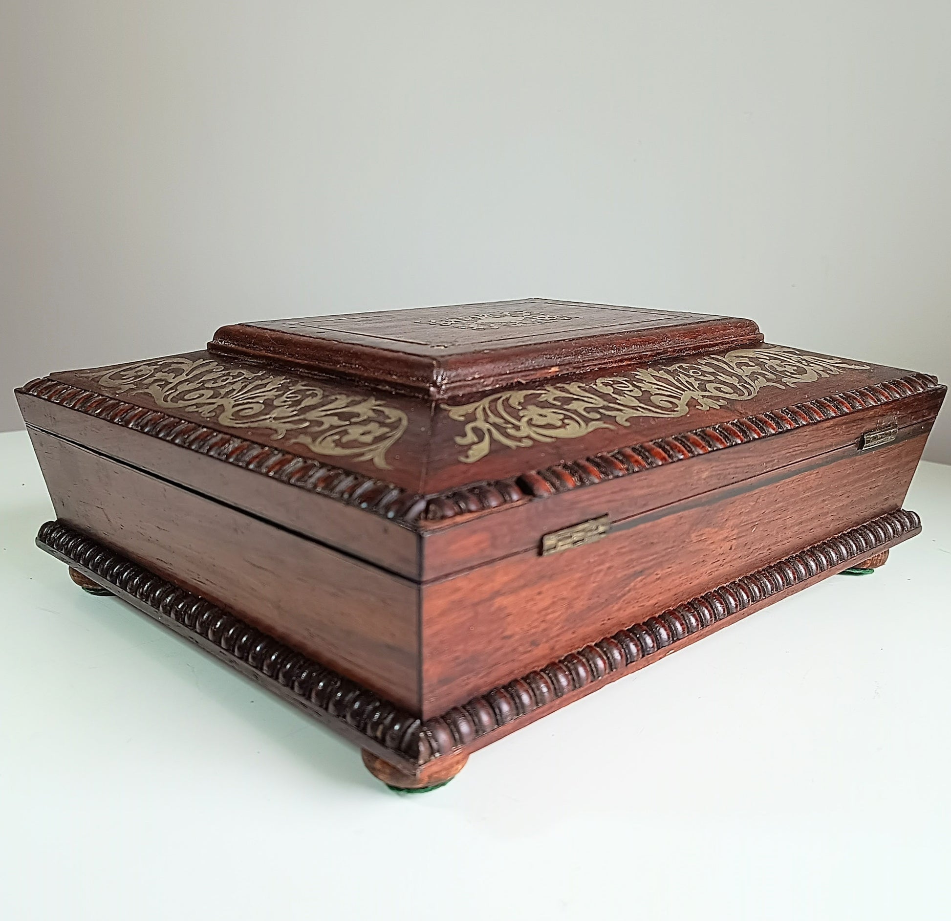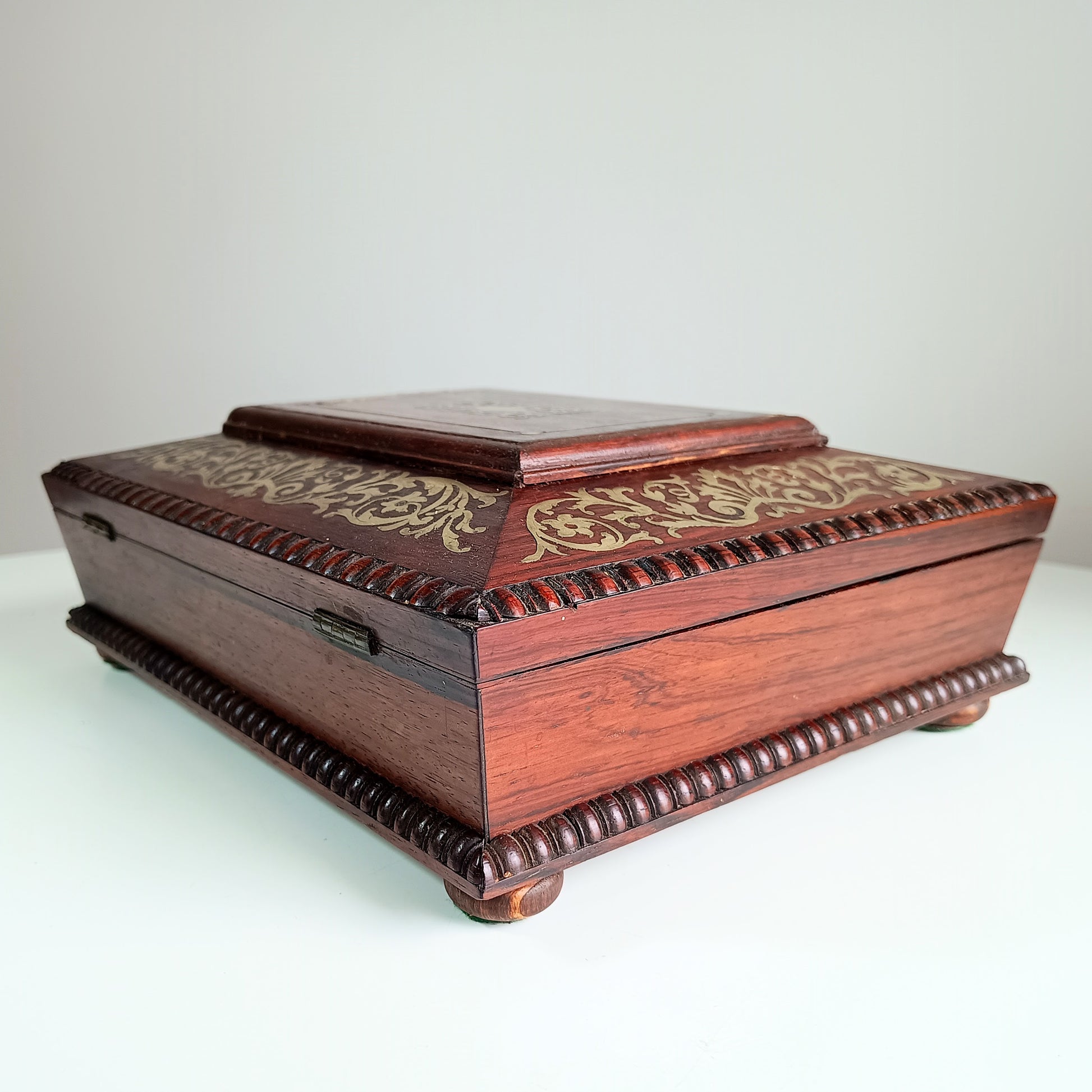 Antique 1830s Regency Boulle Work Casket Box Mahogany or Rosewood Irish or English