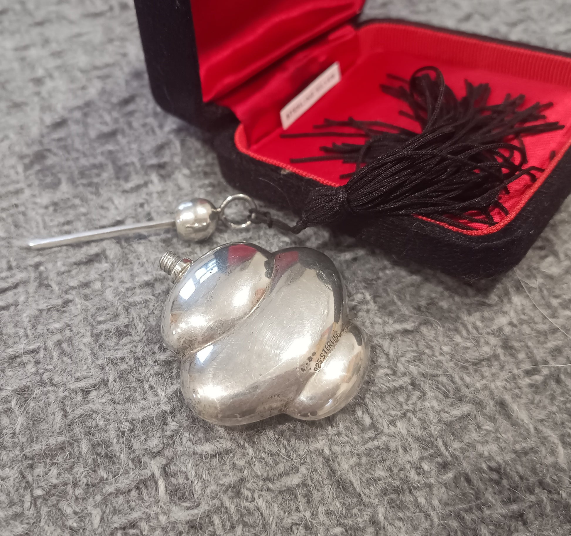 Vintage Art Deco Style Chatelaine Perfume Bottle in Solid Sterling Silver