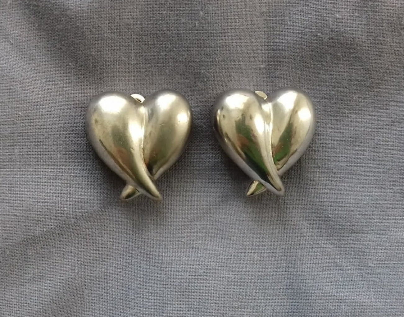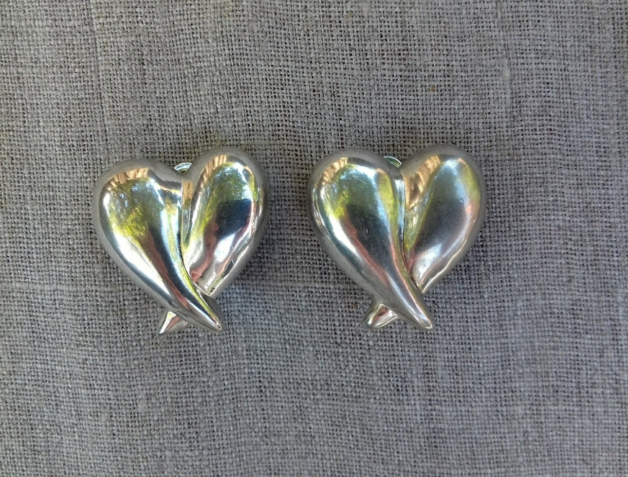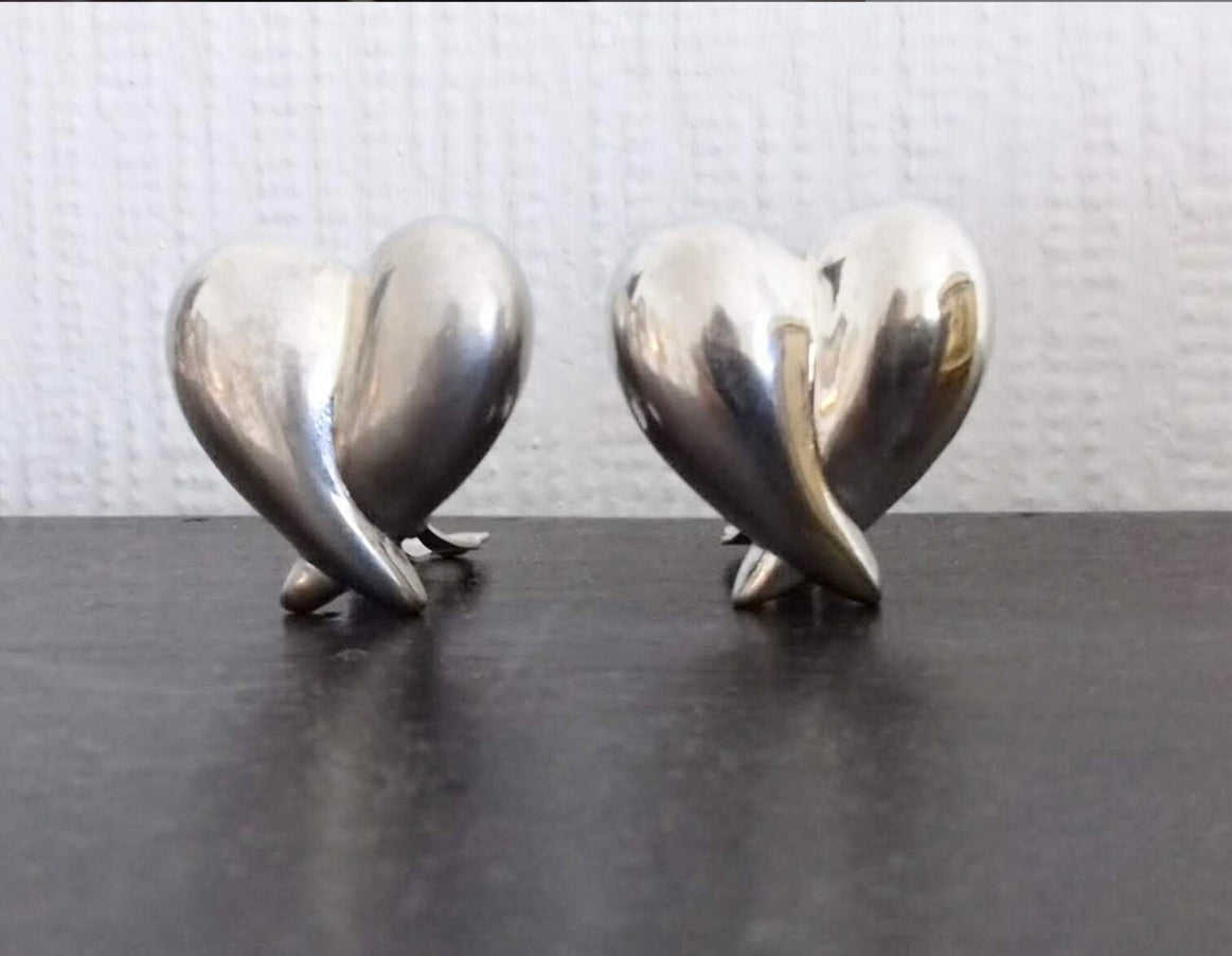 Stylish Vintage Escada puffy heart shaped silver tone clip-on earrings, circa 1990s.