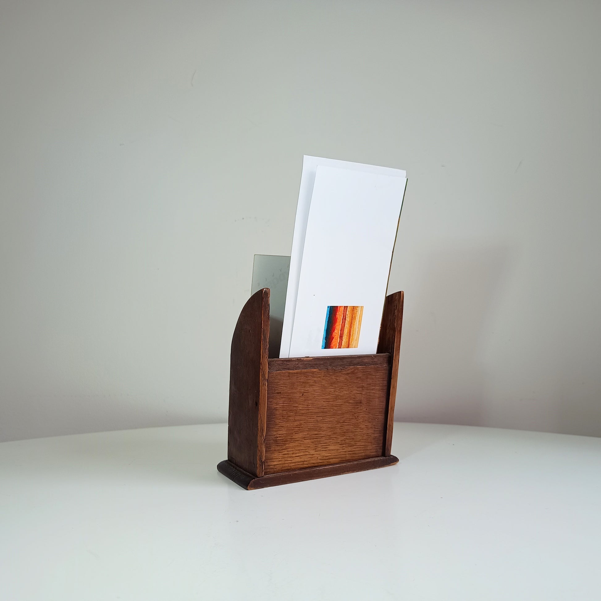 Late Victorian English Oak and Tabletop Post Cards Stand or Letter Rack – Small Desk Model, rarely found marked specifically for Post Cards