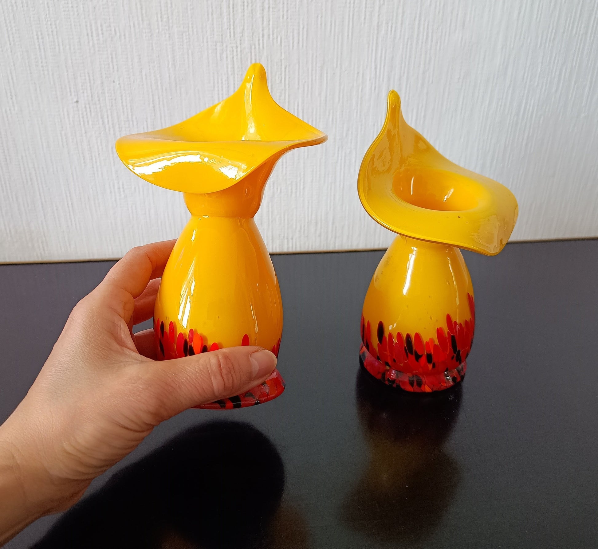 Pair of Vintage Art Deco Czech Tango Glass Vases, Franz Welz Jack in the Pulpit