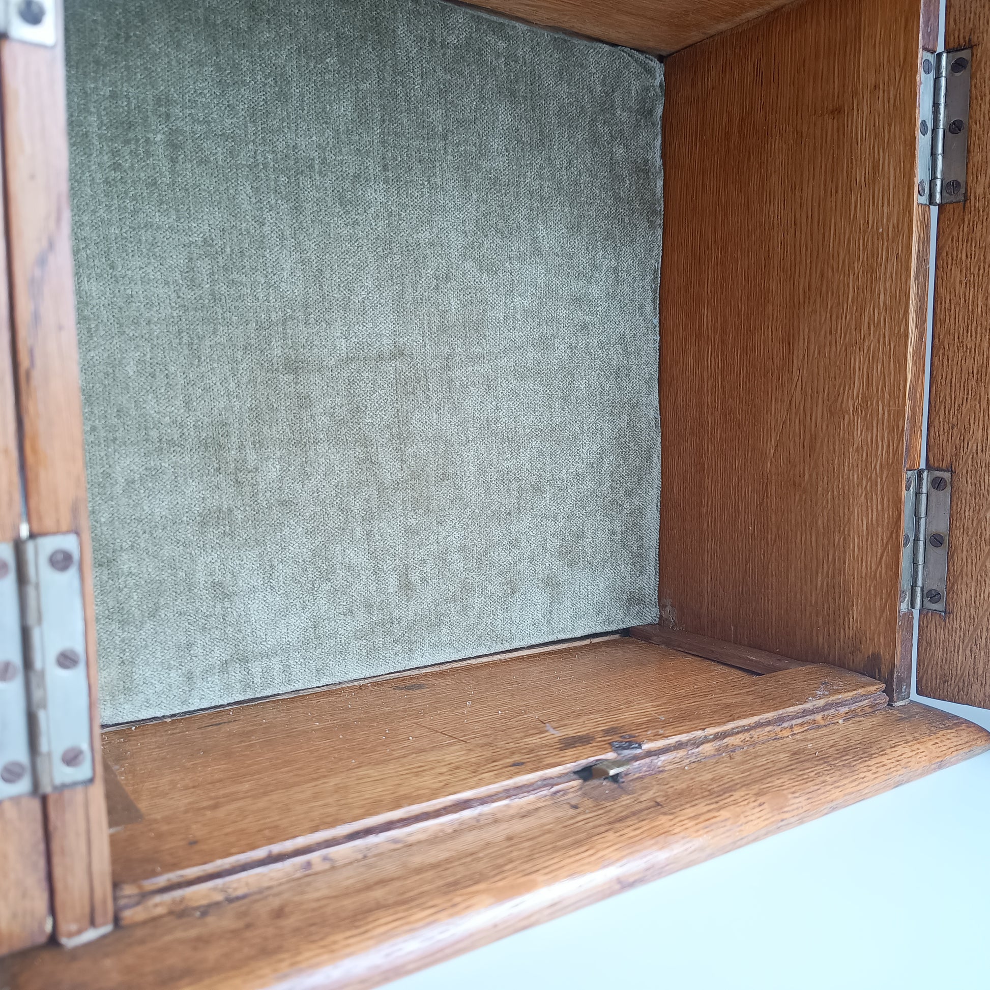 Rare Antique English Quarter Sawn Oak Gentlemans Smokers Cabinet or Humidor With Hidden Whisky Compartment 1890s - 1900s