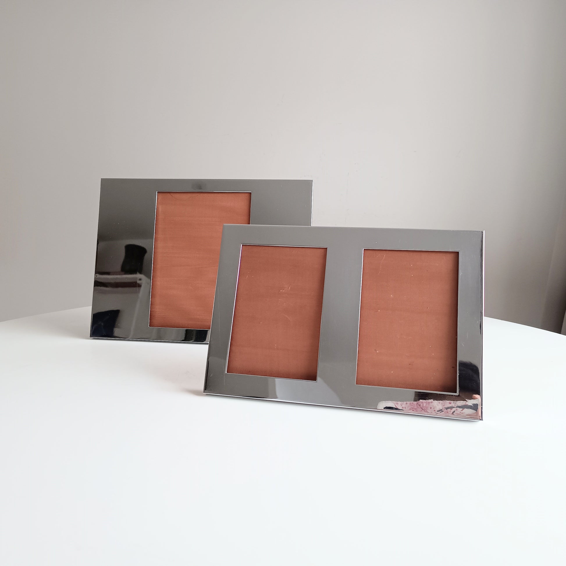 Set of 2 Midcentury Modern Vintage Felice Antonio Botta Tabletop Frames, Chrome & Wood Back