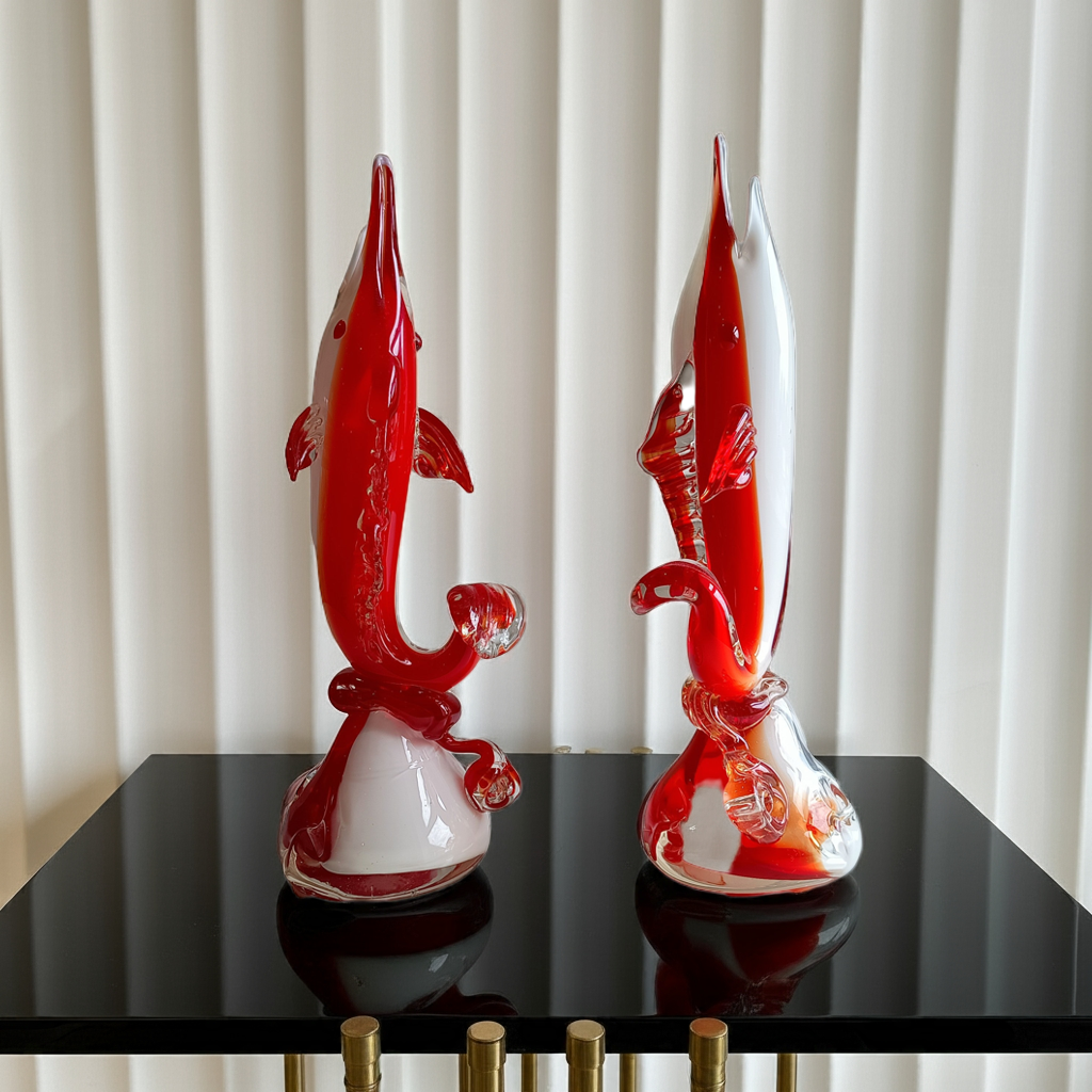 Attribution: no single workshop can be assigned with certainty. The swordfish-soliflore model was produced in several Murano furnaces in the 1950s–70s but most likely made by Alfredo Barbini.