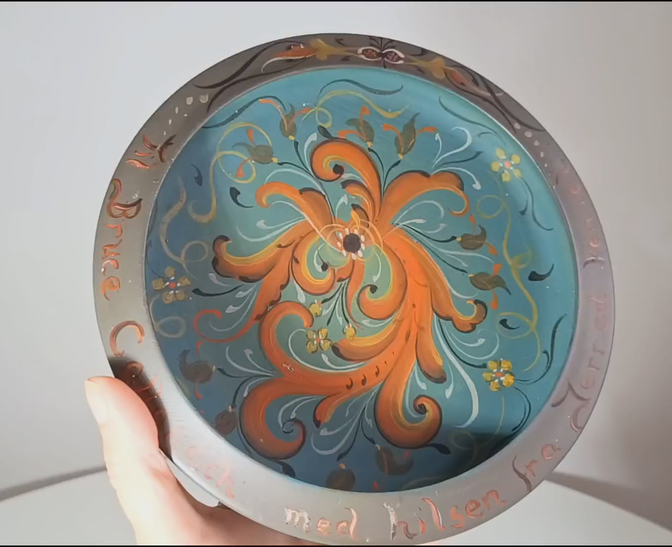 Vintage Ado Gjerde 1974 Norwegian Roseling Folk Art Signed and Dated Hand painted Bread Plate from Telemark - Scandinavian Folk Art
