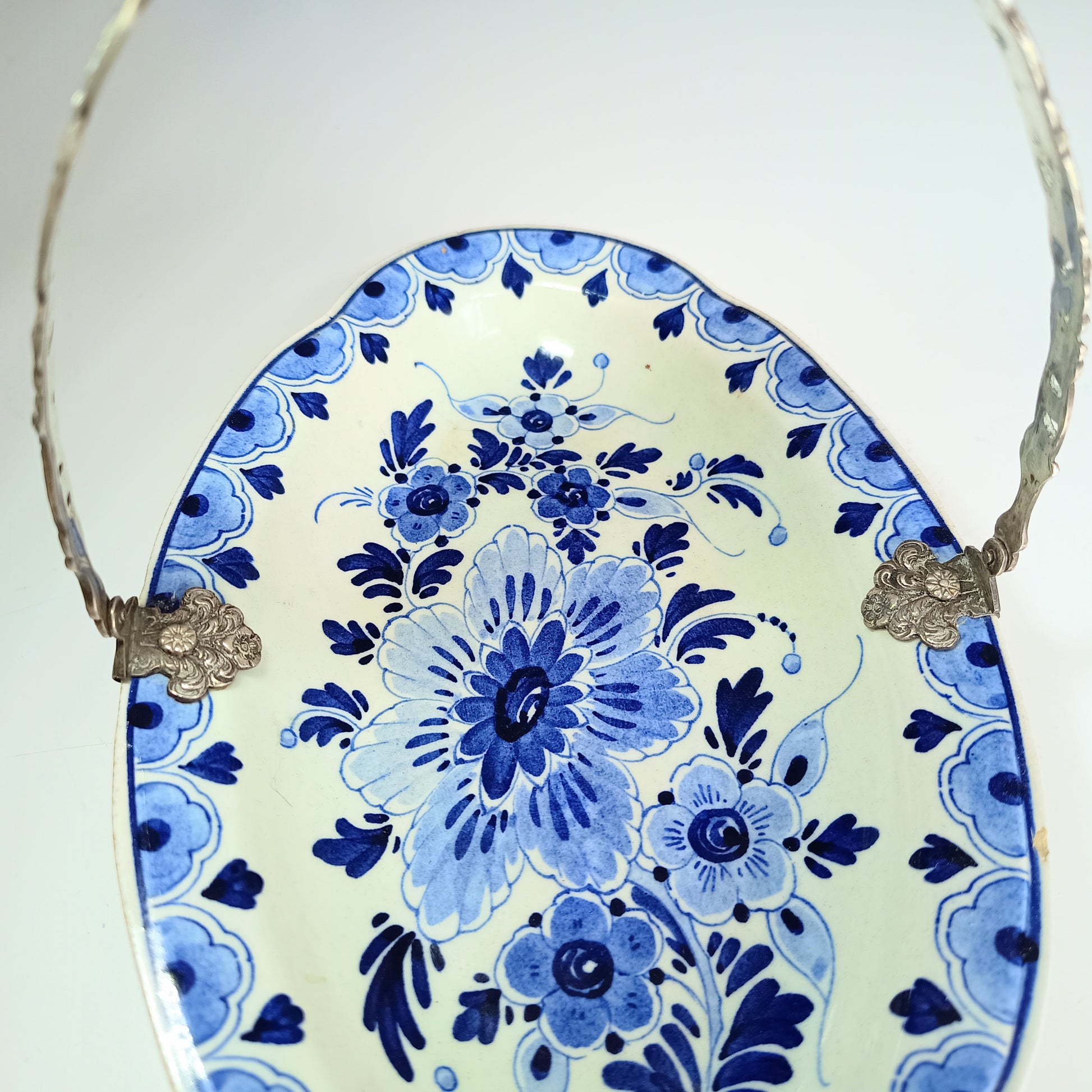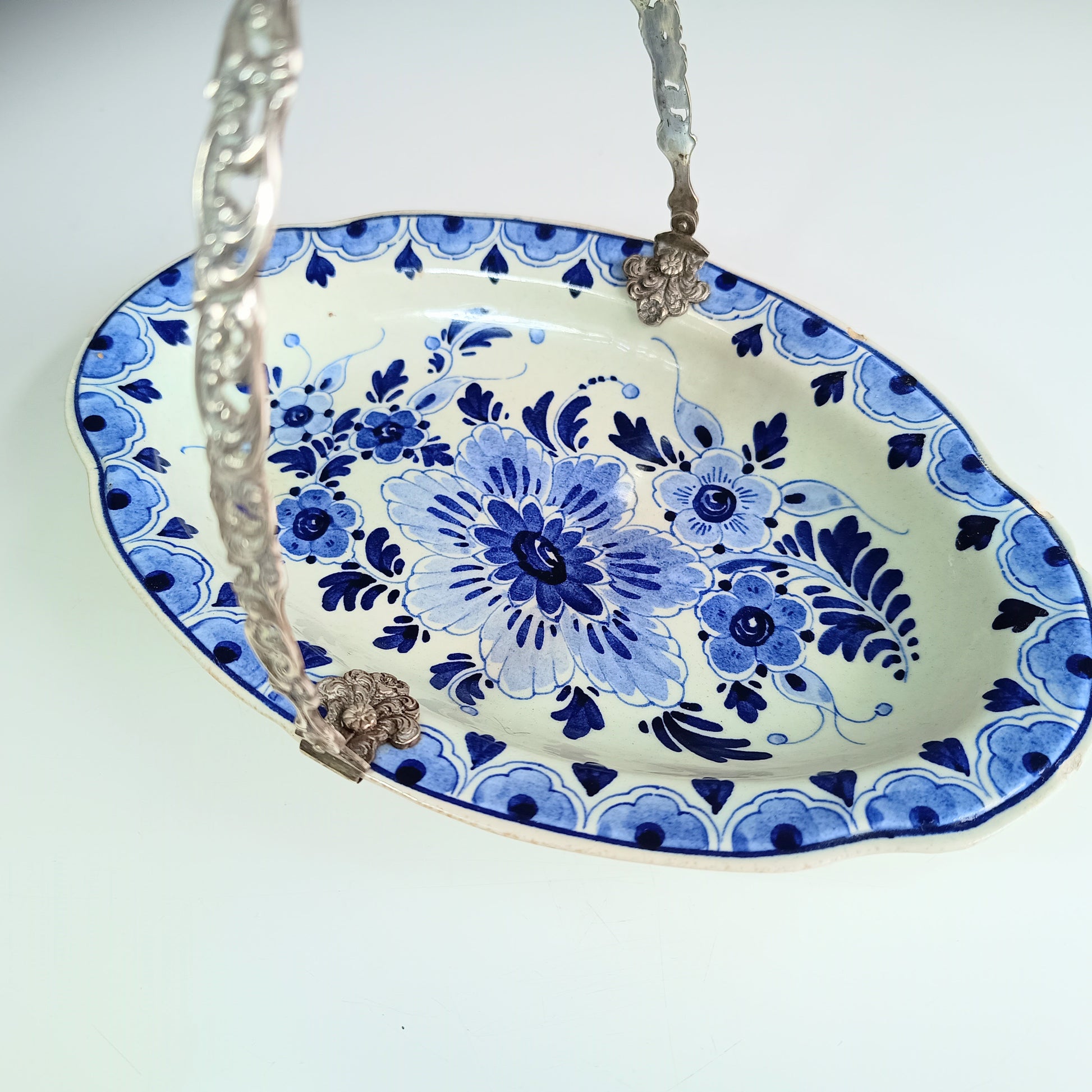 Vintage Delftware Pastry Server with 830 Silver Swing Handle – Delft Blauw, Pre/Post WWII, BW Factory