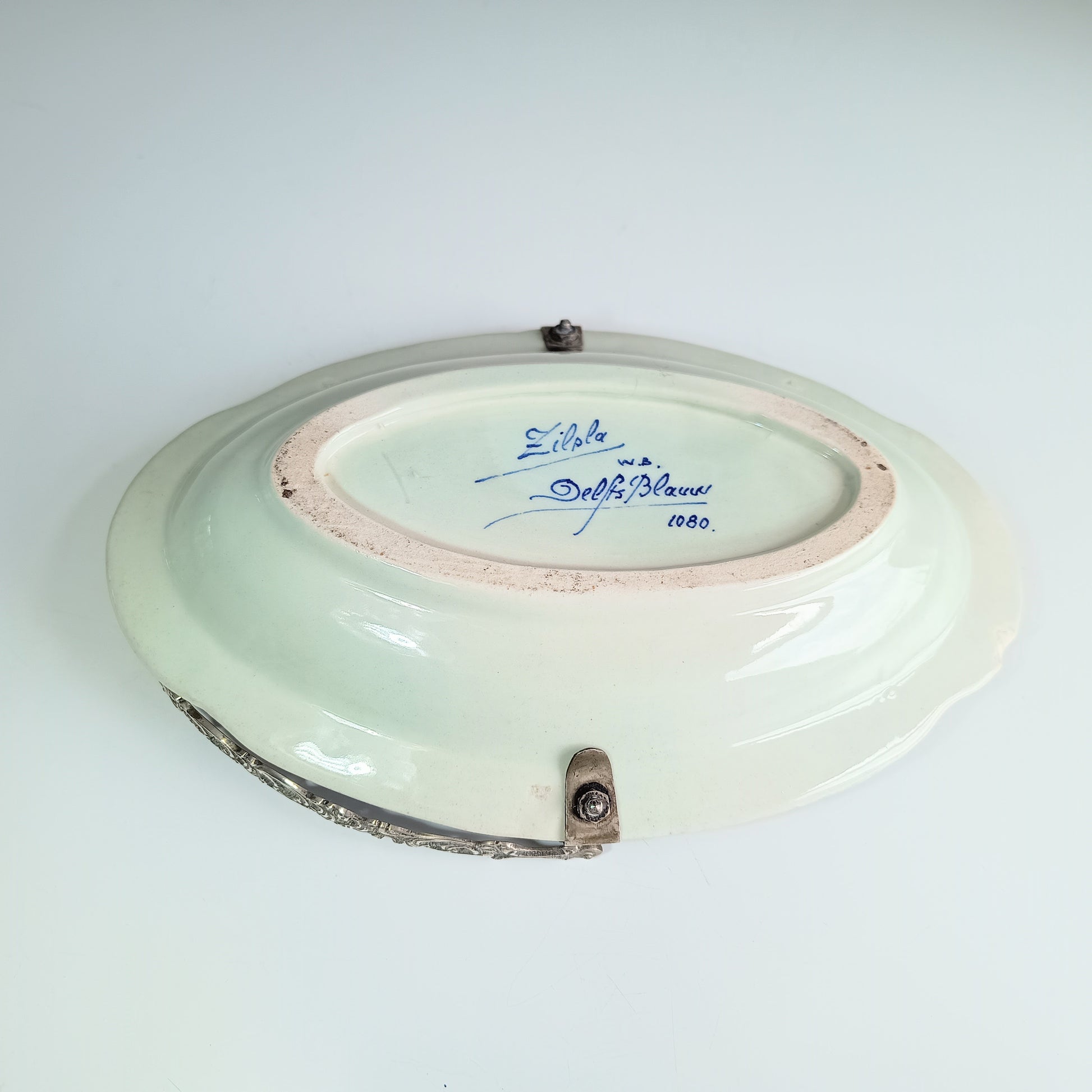 Material: Delftware ceramic with solid 830 silver swing handle in repousse technique, hallmarked to Dutch precious metals legislation guarantee.