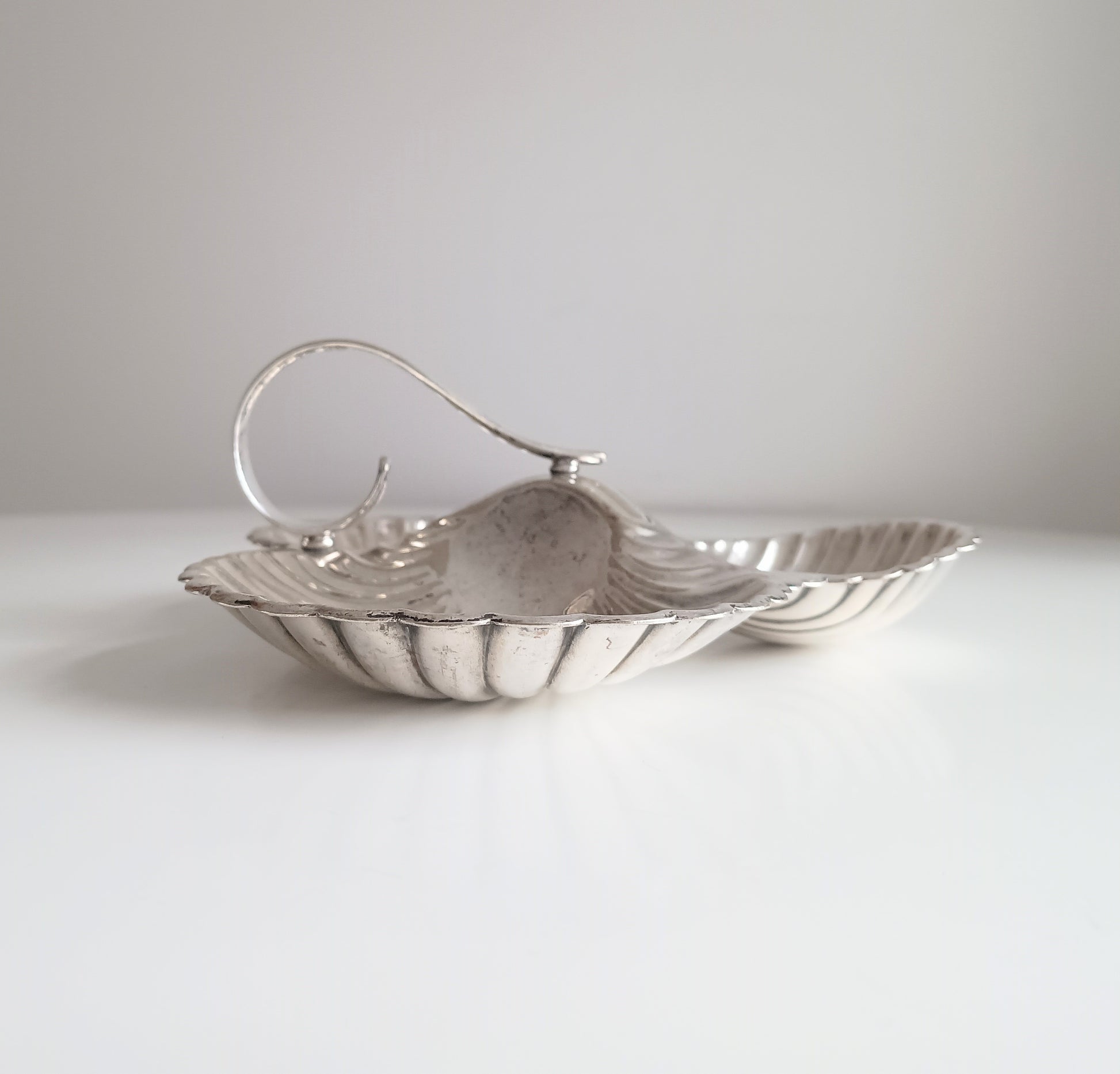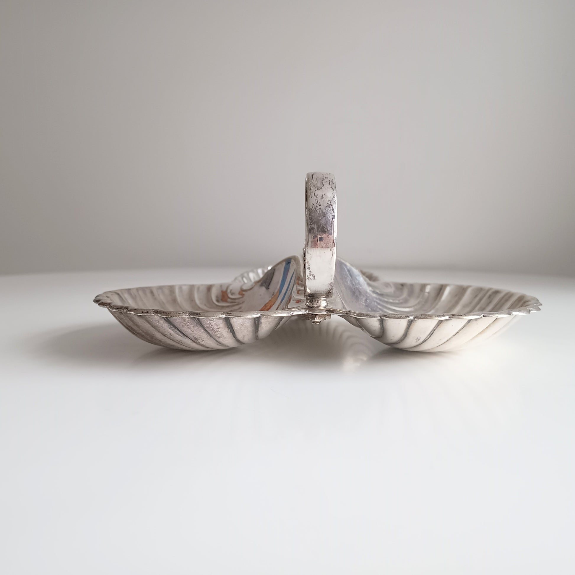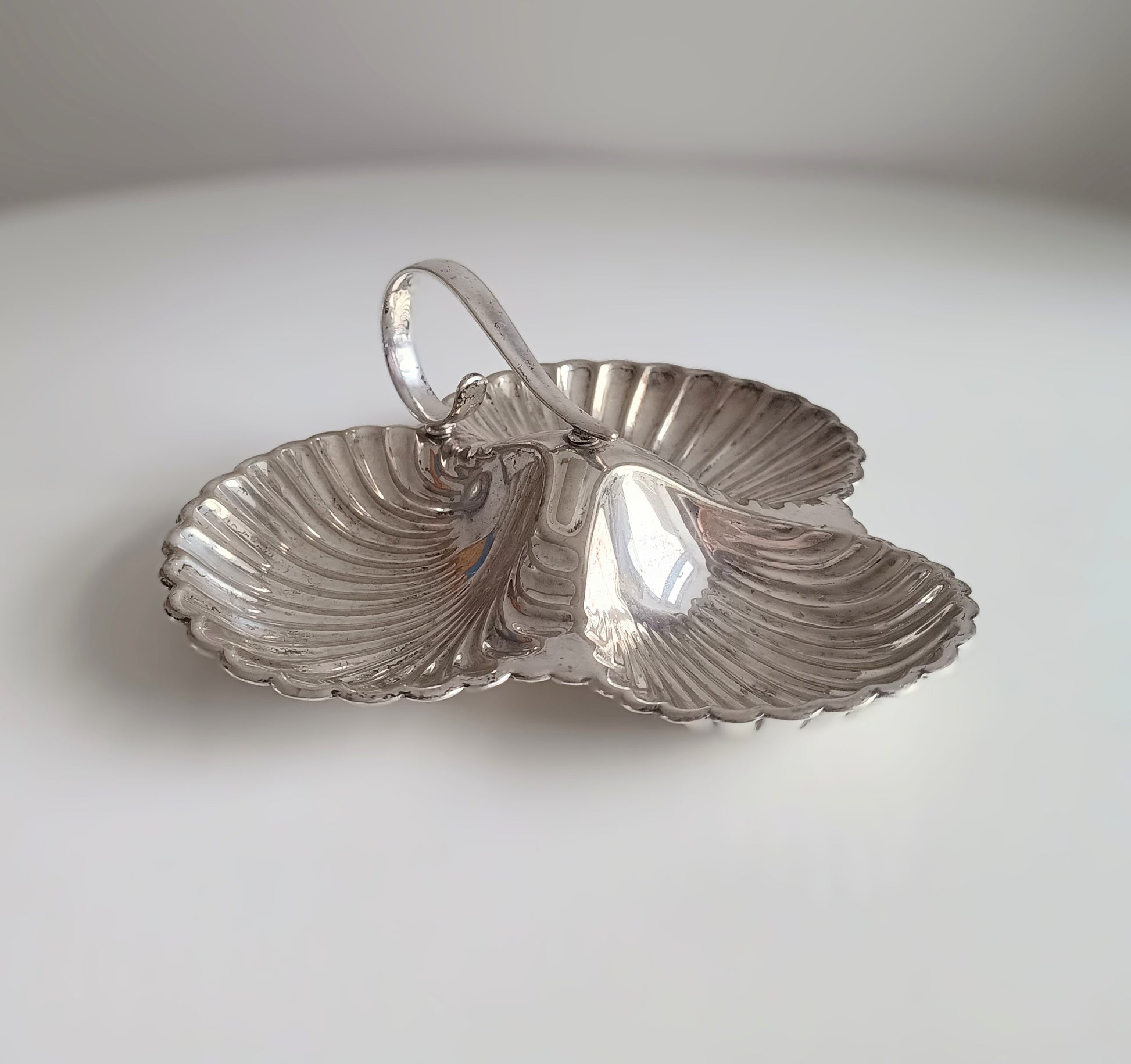 Vintage English Art Nouveau style Triple Shell Cheese& Biscuits Server Dish, Signed