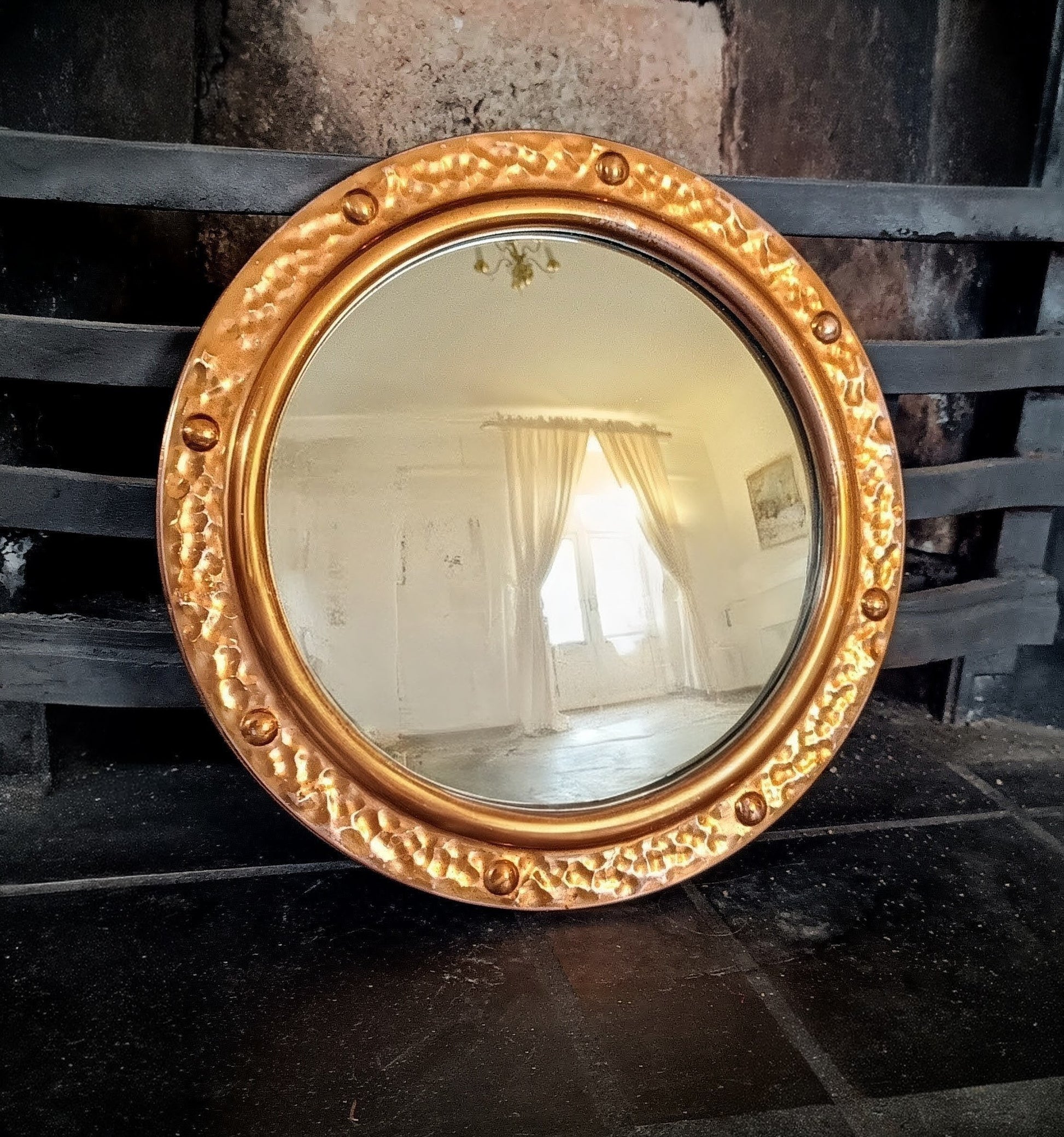 Vintage English Hammered Copper Frame with Lightly Convex Mirror, Nautical Style, 1950s
