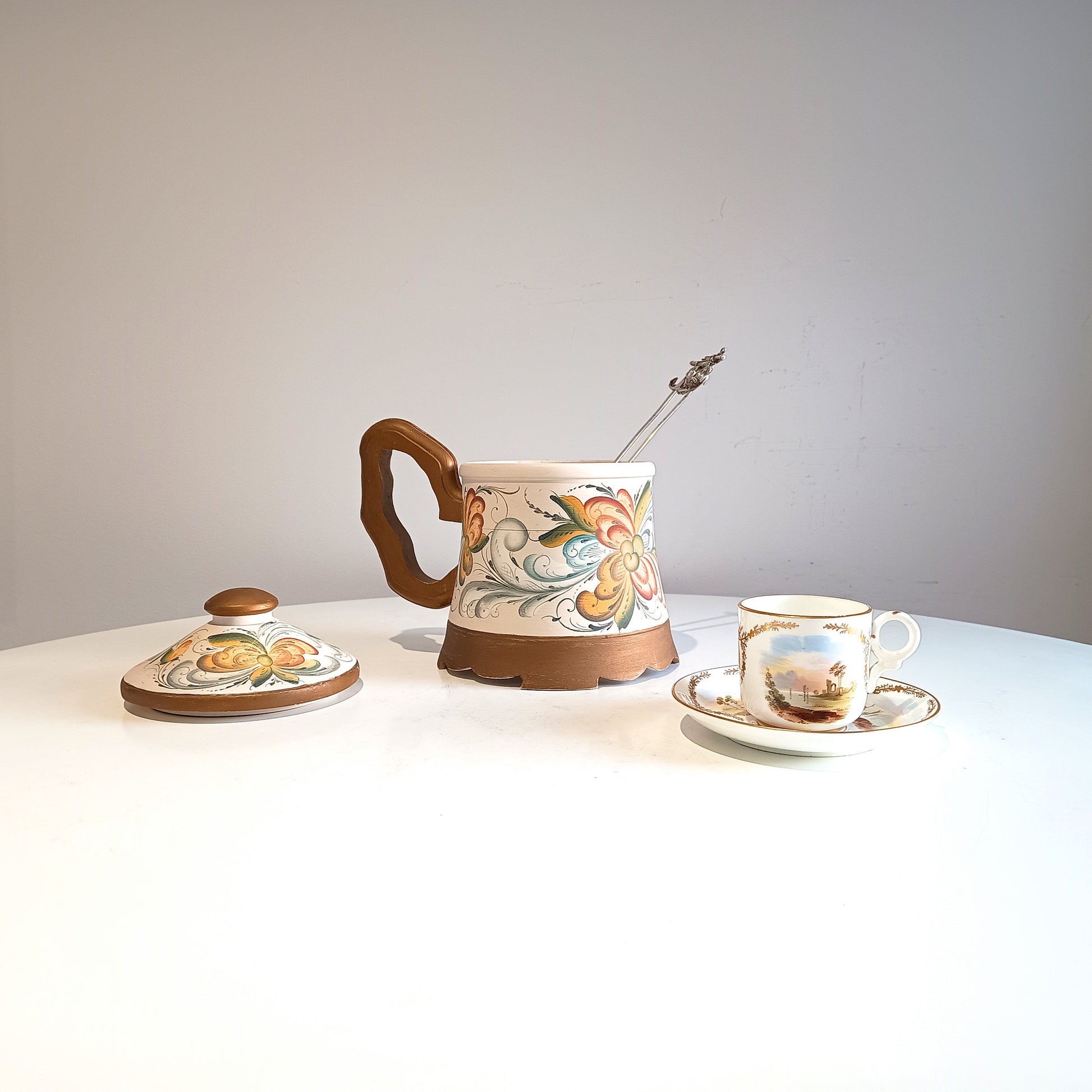 Vintage Norwegian Folk Art Wooden Lidded Beer Mug Lidded Tankard, Hand-Painted Roseling Telemark Style