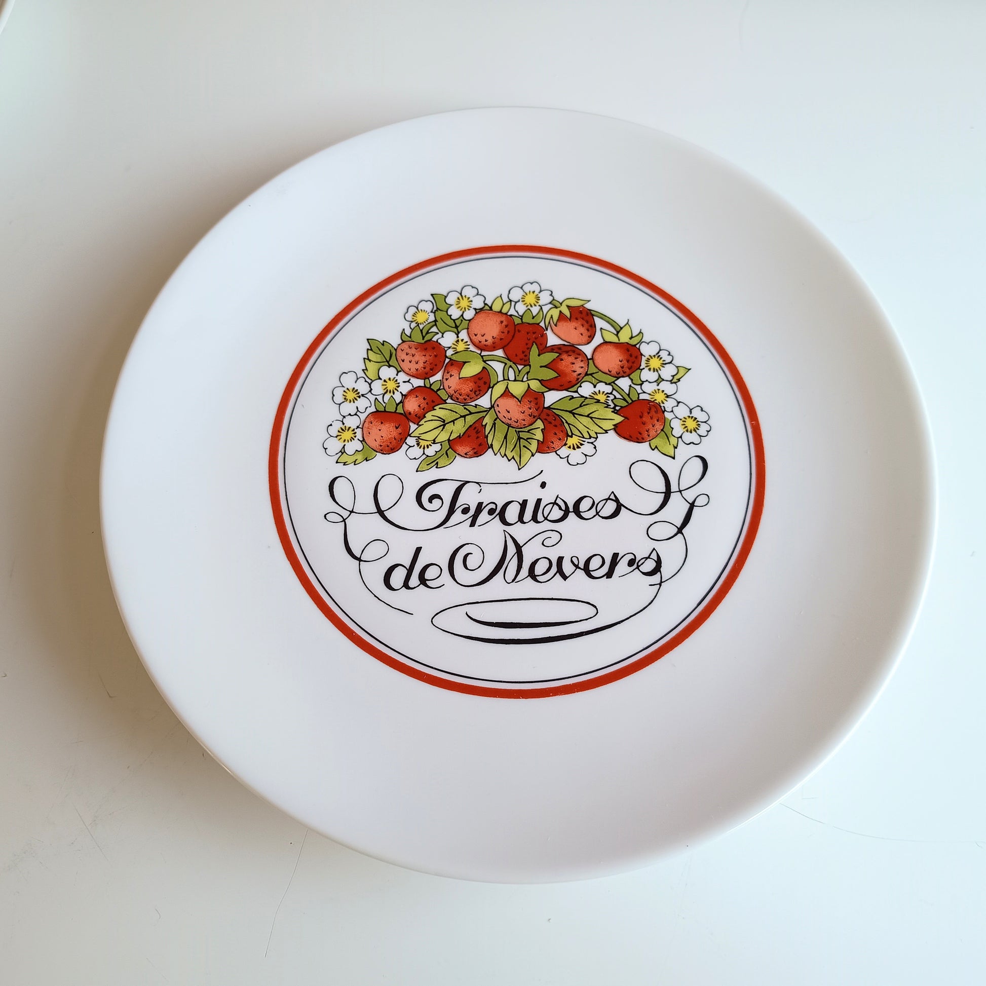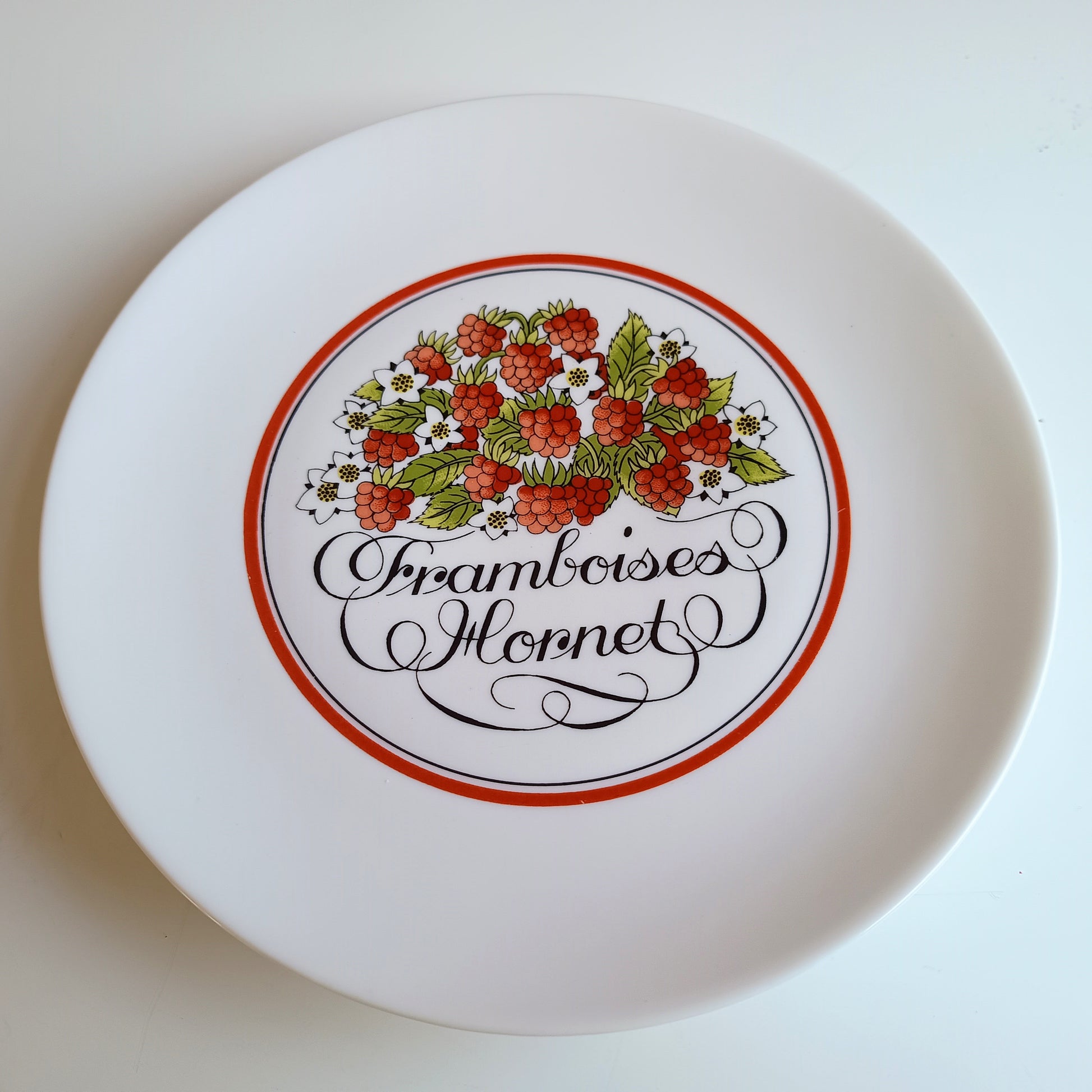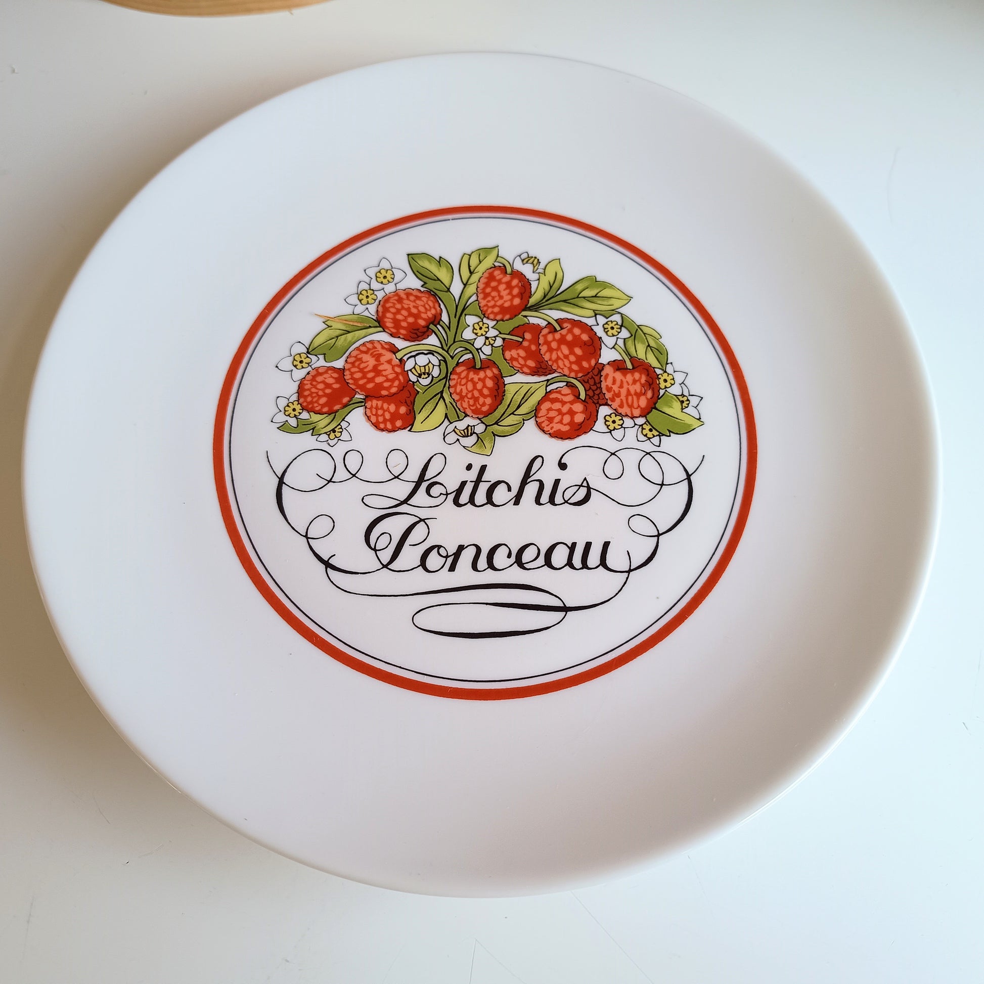1970s Boxed French Vintage Porcelain Plates Red Fruits Porcelaine D'Auteuil