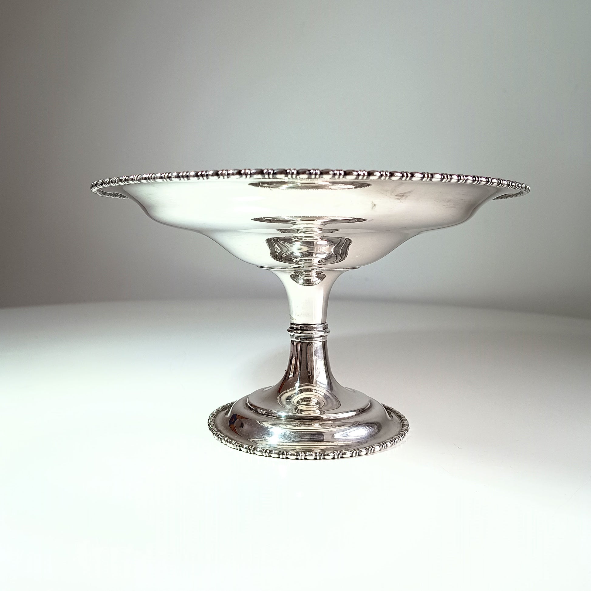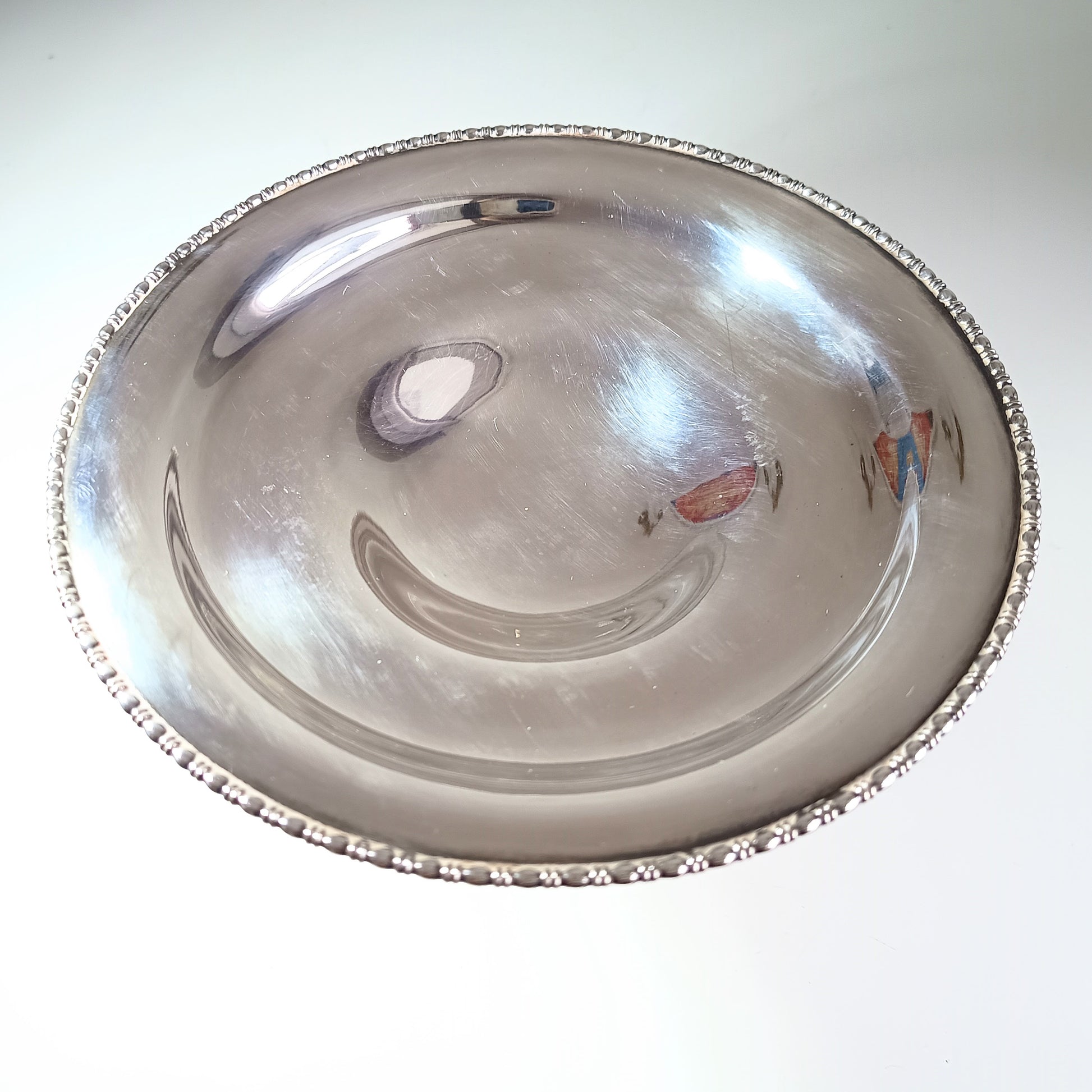 Serve with sophistication using this vintage silver-plated pedestal dish, designed for grapes, fruit, biscuits, or sweets. This is a very elegant silver plated art deco dish that exemplifies quality craftsmanship with its superior A1 silver plating and classic gadrooned edge finish.